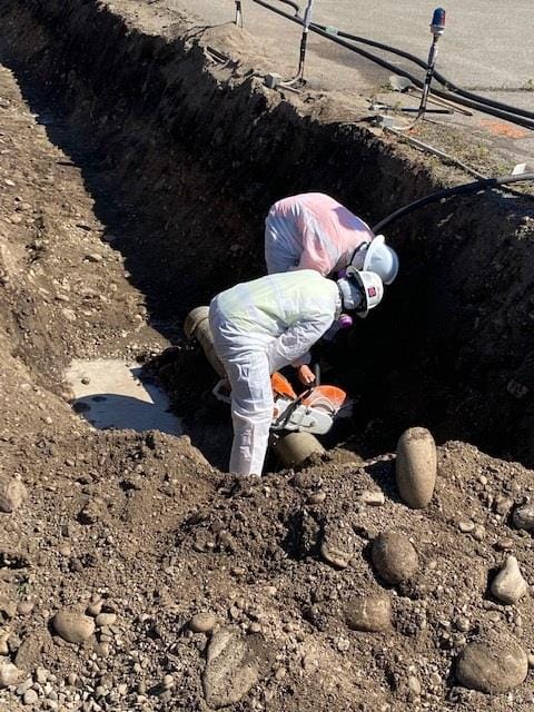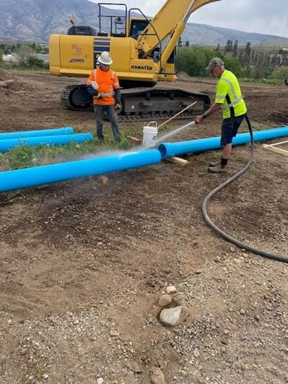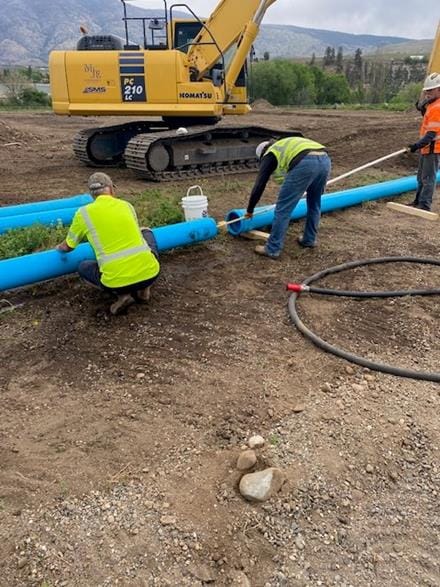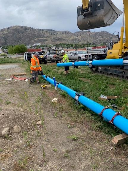 - Install 20m of 150Ø DR18 C900 PVC encased potable watermain, complete with interconnection to existing system.